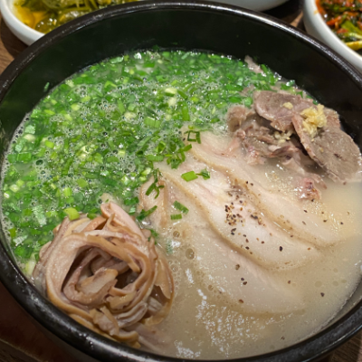 부산국밥이랑 밀양극상 먹었는데 둘 다 육수가 엄청 진하고 고기 양도 많아서 맛있었어요.