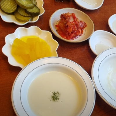 식전 오뚜기스프가 옛감성을 느끼게 해줍니다. 음식은 대략적으로 맛있는편 입니다.