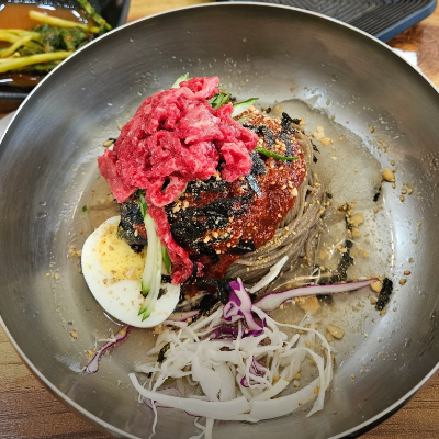 육회막국수랑 육회 너무 신선하고 맛있게 먹고 갑니다. 남편이 입맛이 까다로운 편인데, 육회 너무 싱싱하고 맛있다고 좋아해요.