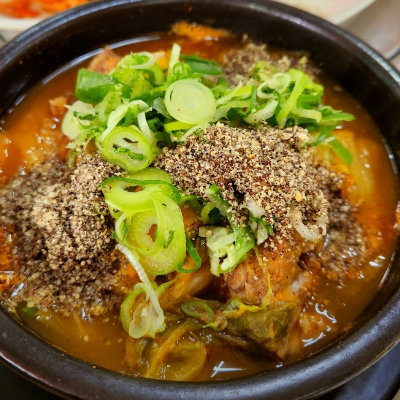 고기는 크게 두덩어리 들어있었고 성인 1인분 먹기에 적당했어요. 들깨가루 테이블에 있는데 촵촵 넣어서 국물에 섞어서 먹으면 시원하고 칼칼합니다.