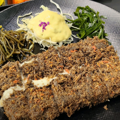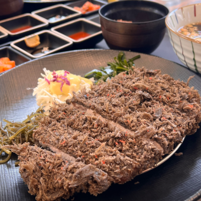 빵가루 정말 바삭하고 색감이 너무 예쁘고 고기는 정말 부드럽고 맛있었어요. 꼬시래기와 채다시마로 건강한 느낌도 받고 특색있는 조합도 느낄 수 있었어요.