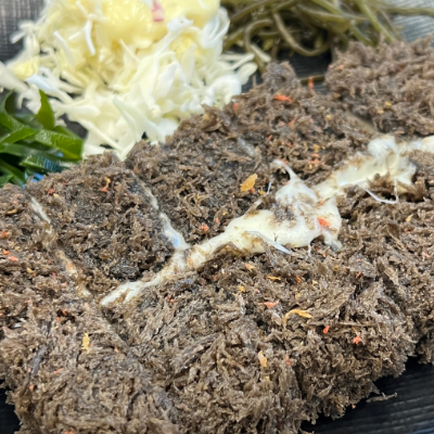 색부터 특이해서 너무 이뻤는데 맛도 맛있어요. 돈가스가 먹다보면 약간 느끼할 수 있는 음식인데 초장찍은 꼬시래기 해초랑 먹으니까 리프레쉬되는 느낌도 진짜 좋았어요.