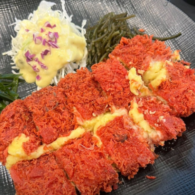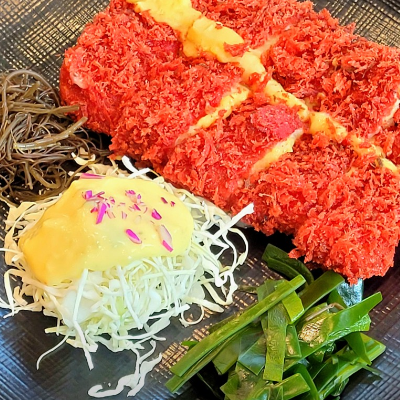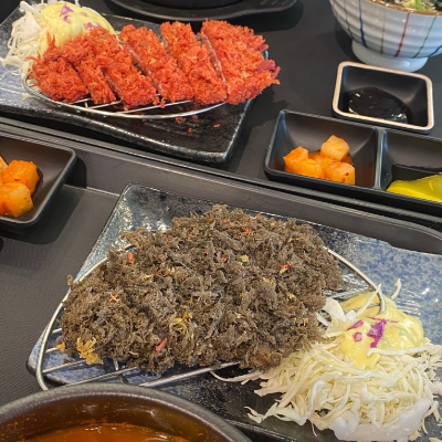 이색적인 칼라풀 돈까스 먹고 왔어요. 빵가루 색감이 정말 예술이더라고요. 바삭하고 고기질감도 너무 맛있었어요.