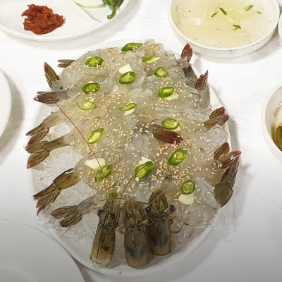 반월수산 에서 추천 하는 메뉴중 하나 왕새우 회~! 싱싱하고 오독오독 하고 회간장 에 푹 찍어 먹었더니 완전 굿굿입니다.