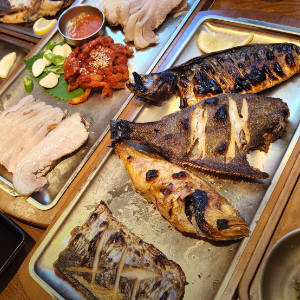 생선구이 드시고 싶을때 가야 하는 곳입니다. 모듬으로 다양하게 먹을 수 있어서 좋습니다. 생선을 화덕에 구워서 더 맛난것 같습니다.