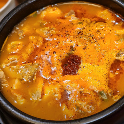 기본순대국으로 주문해도 얼큰한 국물이예요 비오는 날인데 사람 여전히 많네요.