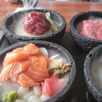 특별한 그릇과 드라이아이스에 담겨진 싱싱한 해산물과 육회는 어마무시했고 솥밥 또한 대박적으로 맛있습니다.
