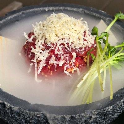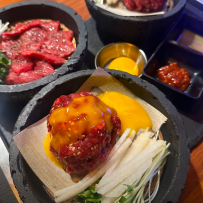육회를 소량으로 팔아서 사이드 메뉴로 주문하기에 부담스럽지 않아서 좋았고, 스테이크 솥밥에는 구운 야채 토핑을 꼭 추가하세요.