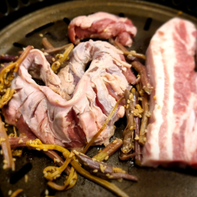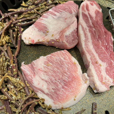삼겹살에 고사리를 함께 굽는건 처음인데 고소하고 맛나요. 고기 잡내도 없어 특히나 좋았어요.