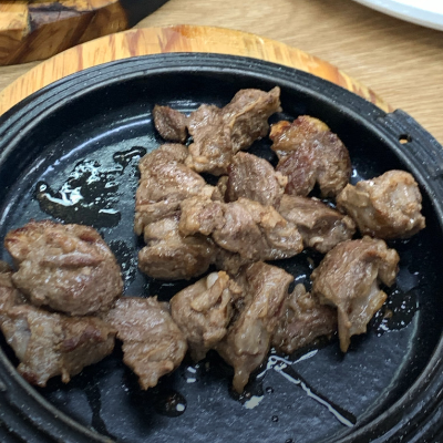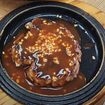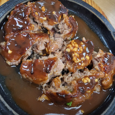 떡갈비 한정판매로 하루에 200개만 하신다는데 맛이 좋습니다. 간바지는 간을 받치고 있는 분위라고하는데 간 맛이 나요.