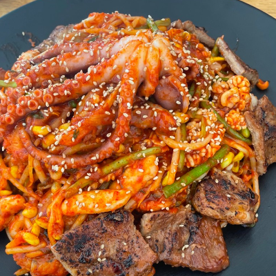 갈비가 맛있어요 그리구 아귀가 실해요. 매운맛은 다양해서 좋고 찐한소스가 술안주로 좋은것 같아요.