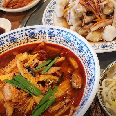 손님이 많은데는 이유가 있네요. 국물 꾸덕하니 진하고 맛있어요. 야채 해산물 질도 좋구 군만두도 육즙도 많고 만두피도 맛있어요.