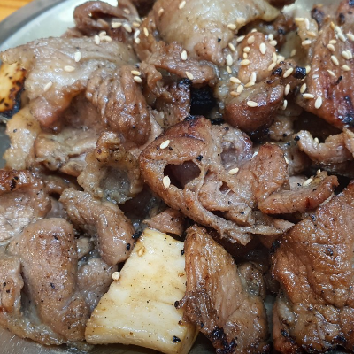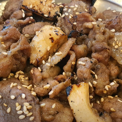 사실 저는 맵찔이라서 설탕 아주 조금만 뿌리니 좋았어요. 연탄구이는 고기 부들부들 버섯까지 같이 구워주시니 겁나 맛있어요.