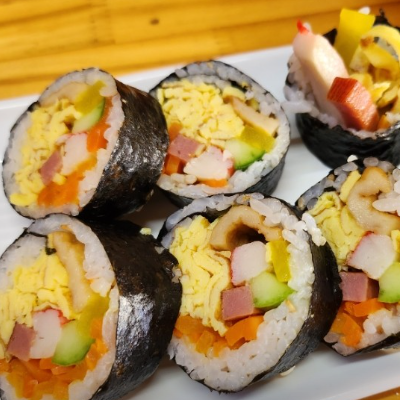 김밥은 무난하고 고기랑 국수는 여전히 잘 어울립니다. 시원한 맥주가 절로 생각나는 음식입니다.