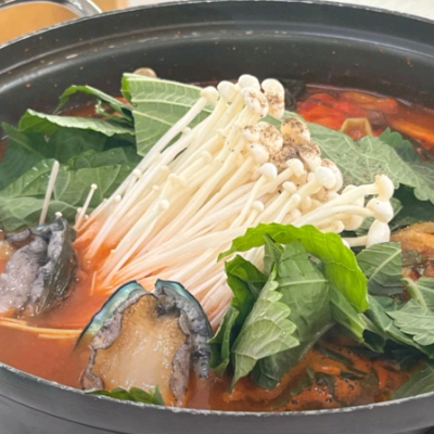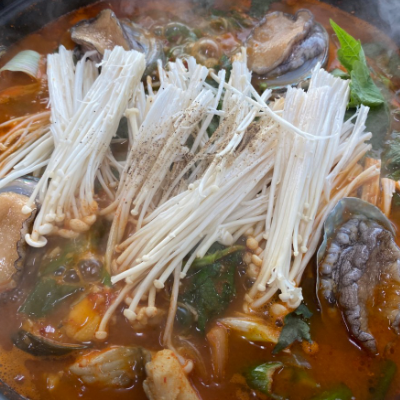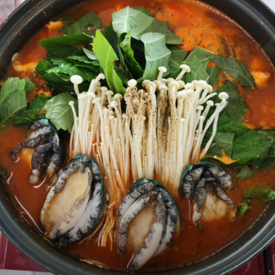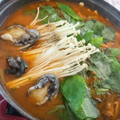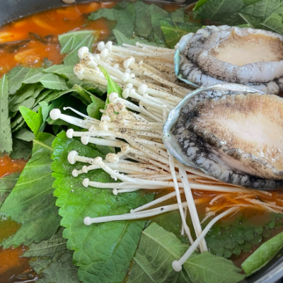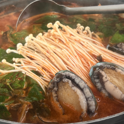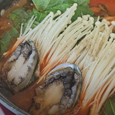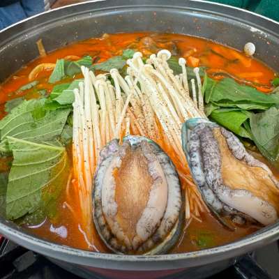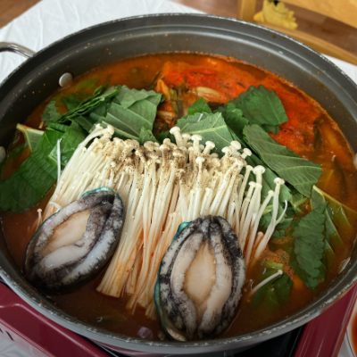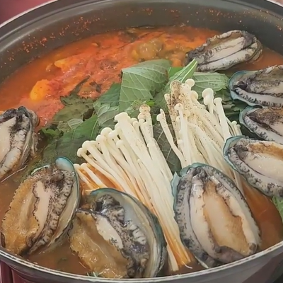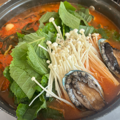 끓기전보다 끓이면서 먹는데 진짜 국물이 끝장나요. 좋은게 여긴 전복을 인원수대로 주시네요.