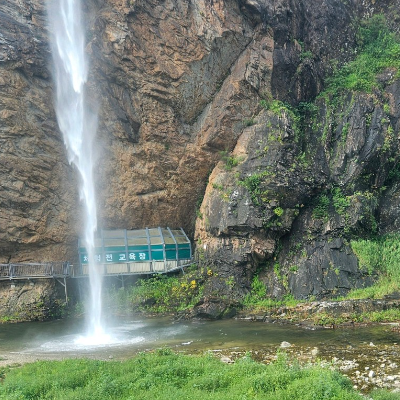 지나가던 인제의 우연히 방문하게 된 음식점입니다. 매바위 인공폭포가 떨어지는 멋진 뷰를 볼 수 있어요.