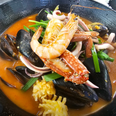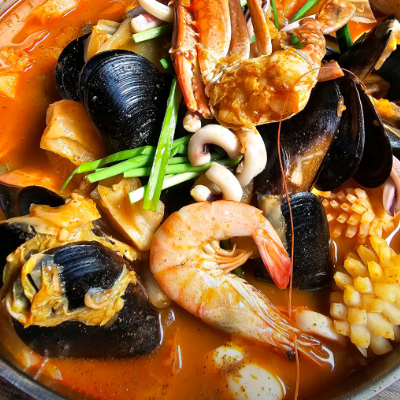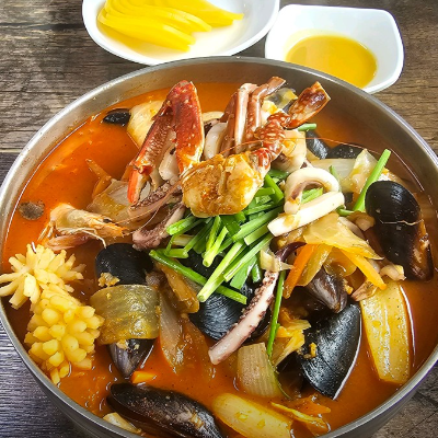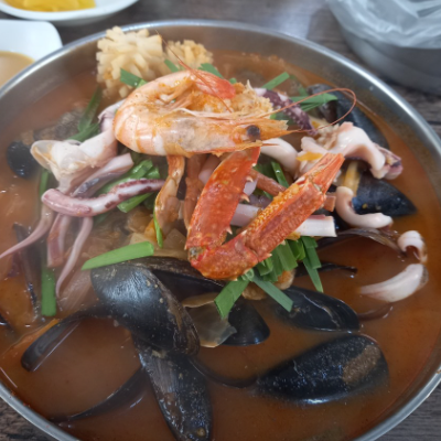 매꼼한거 좋아하시는분 강추!!국물맛 끝내줘요 감칠맛도나고홍합 새우 게 오징어 부추 다양하게 들어가고 신선해요.