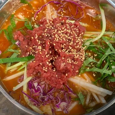 제가 정말 좋아하는 육회물회 맛집이에요. 근데 이제 고기랑 육회비빔밥, 초계국수 등 메뉴가 다 맛있어요.