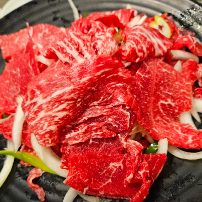 한우샤브불고기 고기가 너무 좋아요!!! 육회물회도 맛있어요. 면도 나오고 공기밥도 나와요.