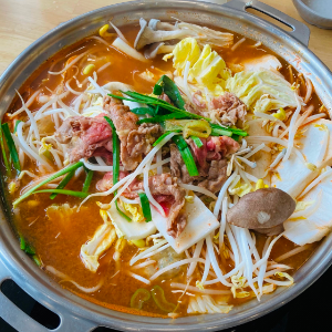 여기는 만두가 진짜 맛있어요. 전골 국물은 매운맛 안 매운맛 선택할 수 있어서 좋아요.