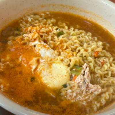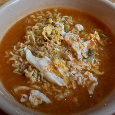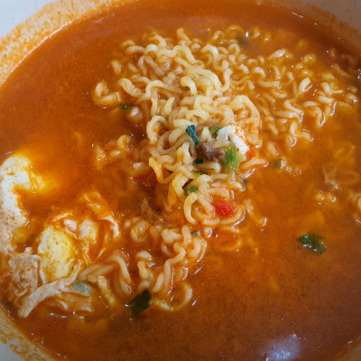 가격도 다른곳에 비해 무려 1/3 이에요. 라면은 굉장히 얼큰하게 맛있어요. 매콤하게 맛있네요.